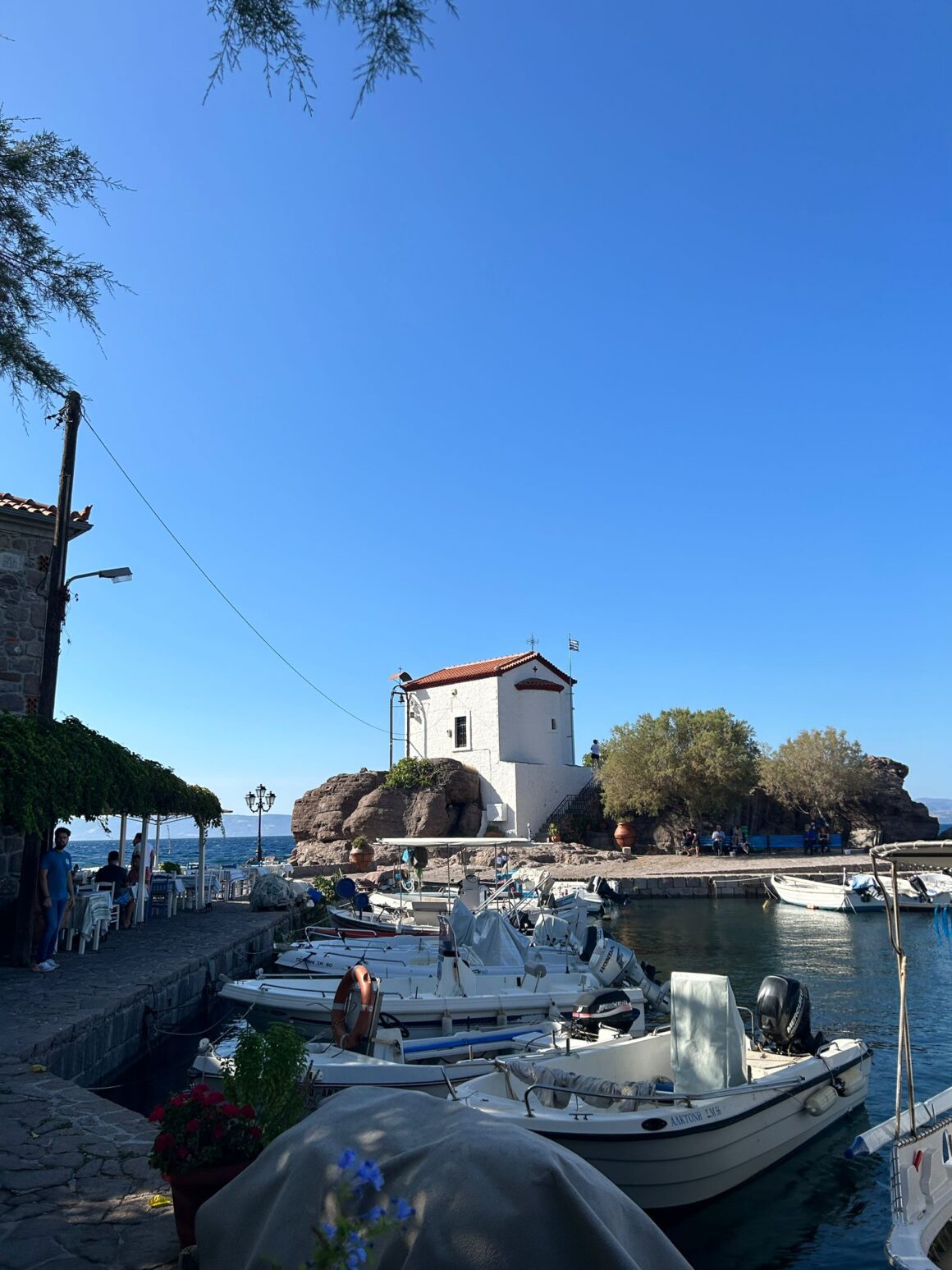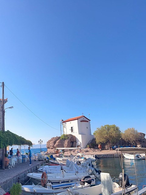 Midilli’de Sykaminia adlı küçük balıkçı köyündeyim. Adeta kayaların üzerine konmuş bir martı gibi duran küçük, beyaz şapel dikkatimi çekiyor. İlham perim kulağıma “benden söylemesi, bunu kaçırma, ilginç bir hikayesi var” diye fısıldıyor.