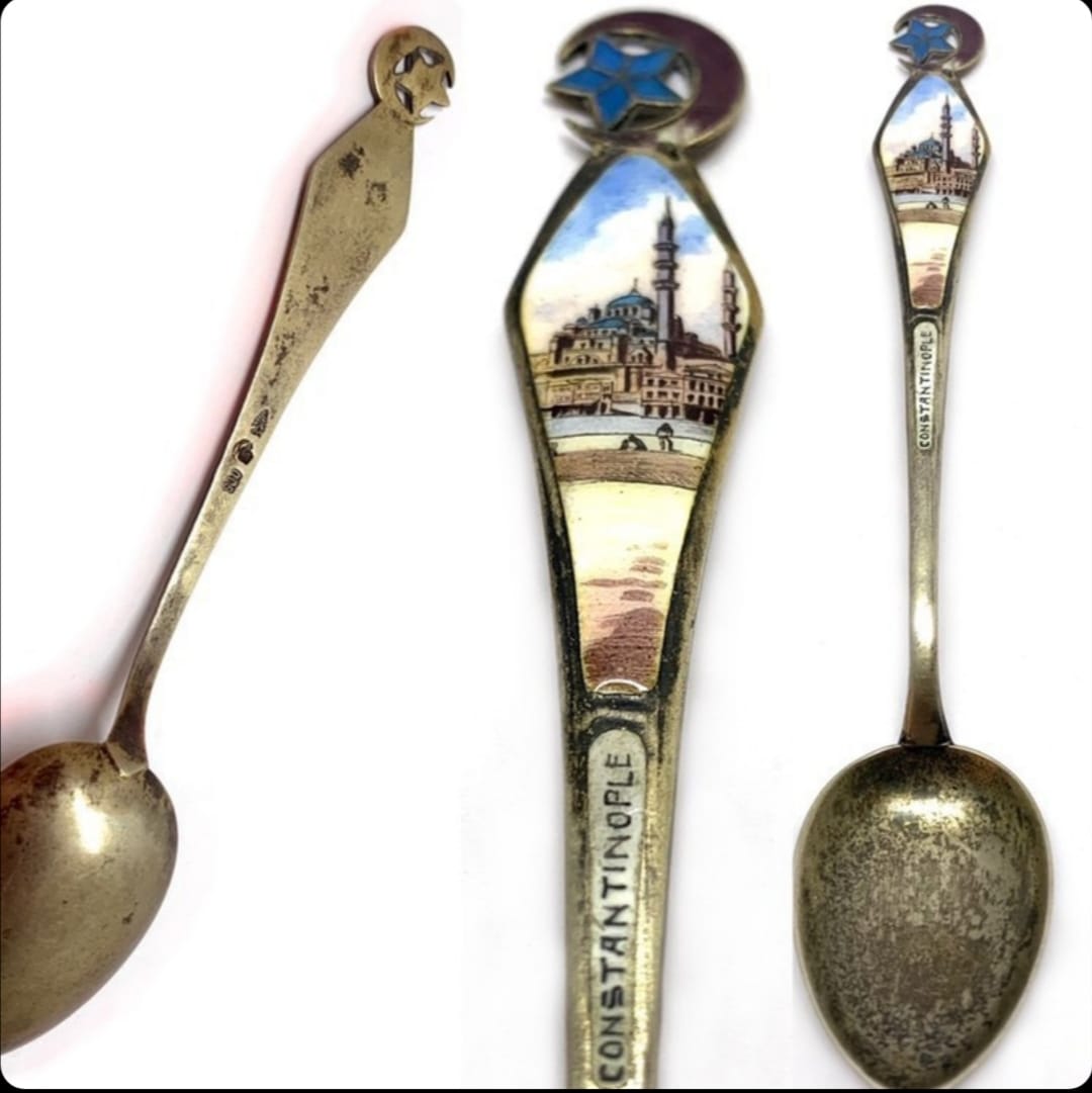 Beyaz pelür kağıda özensizce sarılmış paketi usul, usul taklalar attırarak açıyorum. Gözlerime inanamıyorum. Üzerinde “Constantinople” yazan, sapının sivri ucunda küçük bir hilal ve yıldız figürü olan, gene sapında mineli Sultanahmet Cami tasviri bulunan bir çay kaşığı çıkıyor. Nefesimi tutmuş, hayranlıkla izlerken, “Ağbi bu kaşık 1900’lerde İstanbul’a gelen gezginlere satılmak için “souvenir” amaçlı yapılmış” diyor antikacı dostum.