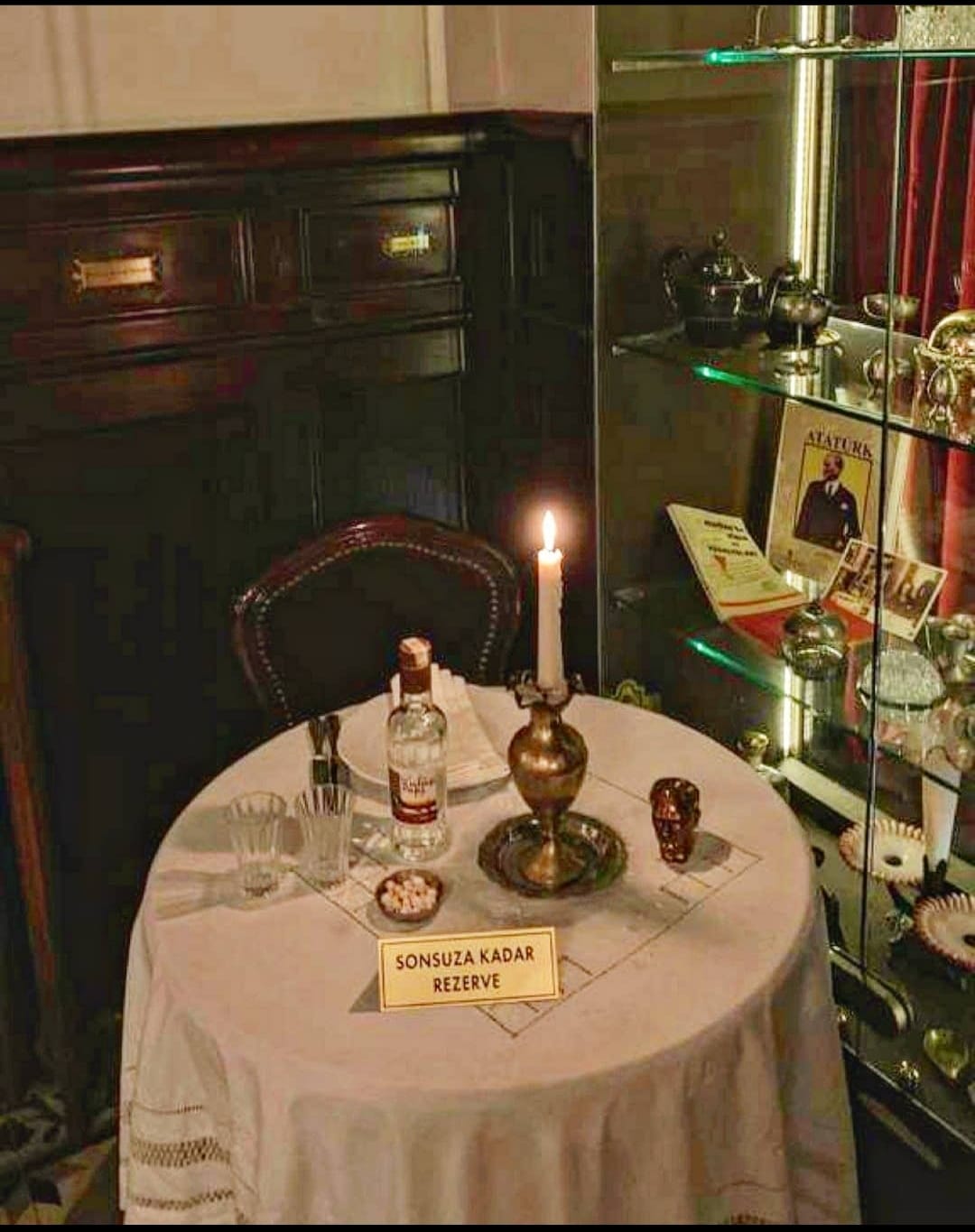 Girişin sağında, 1938 yılından beri kimseye verilmediği söylenen ve üzerinde “Sonsuza Kadar Rezerve” yazan, tek kişilik servis ile, biraz beyaz leblebi eşliğinde 35’lik Kulüp Rakısı’nın hazır bekletildiği, Atatürk’e adanmış 2 numaralı masa hoş bir ayrıntı olarak dikkatimizi çekiyor. Bu arada bir eleştiri maksadıyla değil, sadece meraklısı için küçük bir not olarak Kulüp Rakısı’nın 1939 yılında üretilmeye başlandığını ekleyelim.