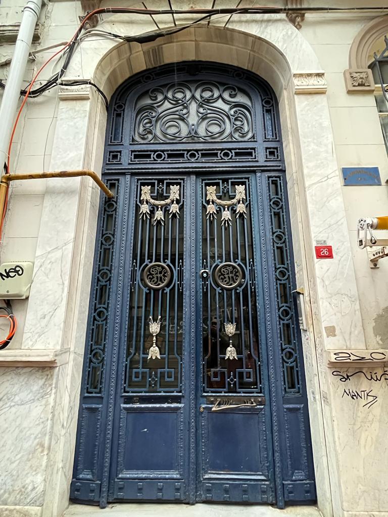 Yıllar önce demir kapısını beğenip, fotoğrafını çekmiş ama hikayesini araştırmadan arşivde unutmuşum. Geçen gün karşıma çıktı. Fotoğraf aslında hikayem var benim diye bağırıyor ama nedense ben işitmemişim. Var mı başka fotoğrafı diye taradım arşivi ama sadece tek poz, o da demir sokak kapısı. Allahtan fotoğrafın köşesinde apartman ismi Karminati Apartmanı diye okunuyor.