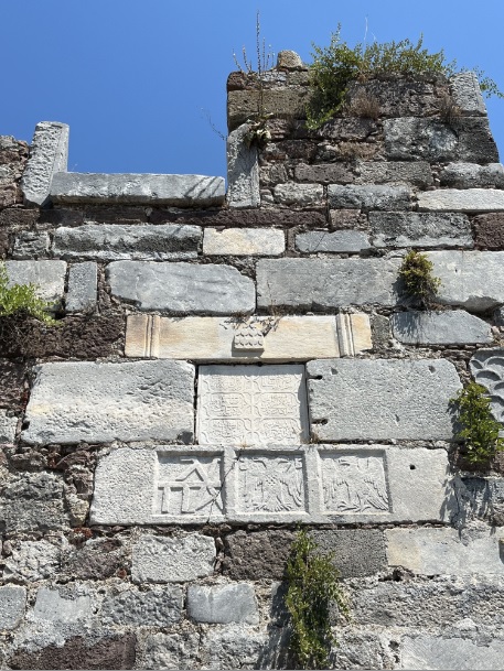 Üst sırada sembol ise Cenevizli tüccar bir aile olan Gattilusio’ların balık pulundan esinlenilerek yapılmış olan aile armasıdır.