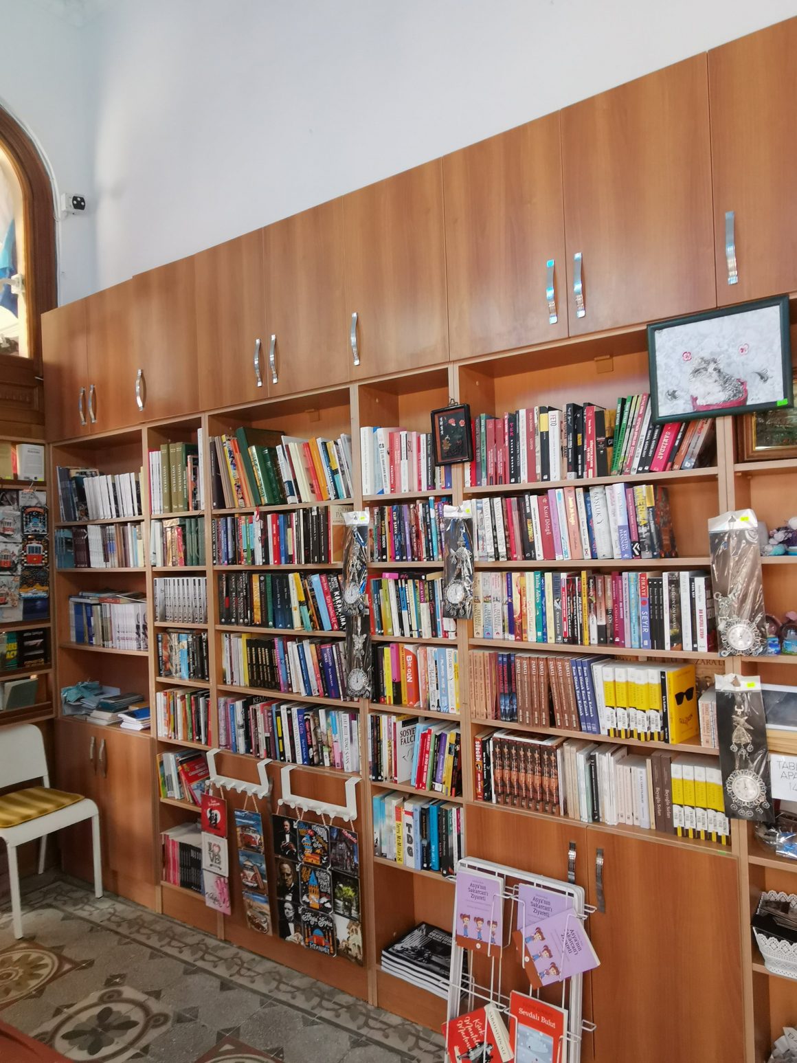 Önce adaya dair yayınlanmış onlarca kitap, sonra da abonelerine dağıtılmayı bekleyen mavi plastik poşetlerde Şalom gazeteleri dikkatimi çekiyor. “Eskiden gazeteleri dağıtmak için 20-25 çocuk çalışırdı bu dükkanda” diyor Micail bey. Ünlü ressam ve yazar Ferruh Ertürk de bu çocuklardan biriymiş. Geçmişten günümüze müdavimleri arasında Faik Ali Ozansoy, Ziya Paşa, Ziya Gökalp, Ahmet Refik, Tahsin Nahit, Yahya Kemal, Reşat Nuri Güntekin, Yunus Nadi, Yakup Kadri, Halil Nihat Boztepe, İbrahim Alâaddin Gövsa, Orhan Seyfi, Nurullah Ataç, Çelik Gülersoy ve Orhan Pamuk yer alıyor. Bundan mıdır bilinmez kitabevinin kurucusu Nikolaki beyin dükkanına takım elbise giymeden, kravat takmadan geldiğini gören olmamış.